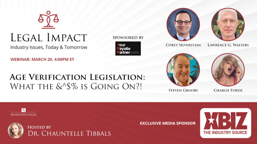 LOS ANGELES — Adult industry attorney Corey D. Silverstein's latest "Legal Impact" webinar, titled "Age Verification Legislation: What the &^$% is Going On," is now available for streaming.