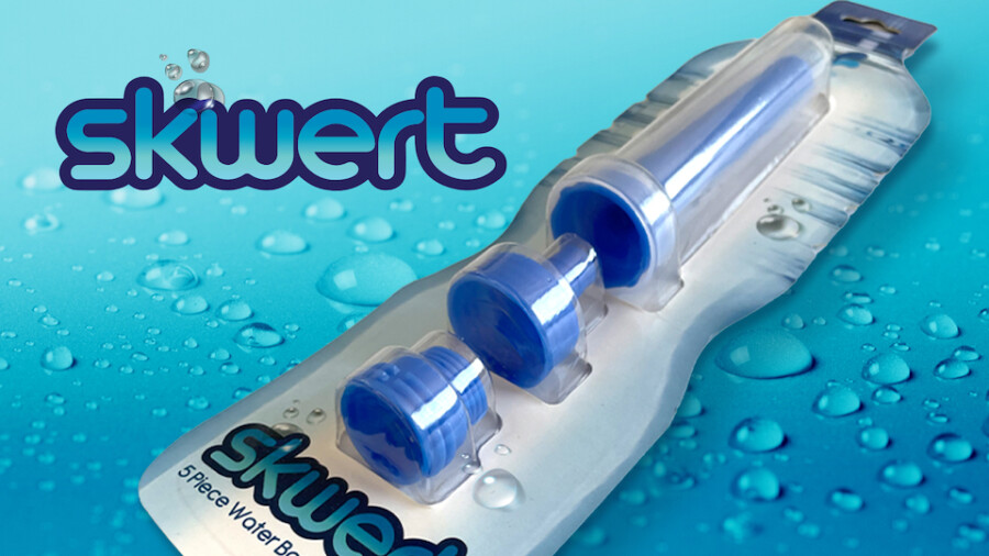 The Skwert adapters, a rep said, “are designed to fit in your back pocket for an on-the-go clean. Just find a water bottle, screw it on, and you're ready to go!”