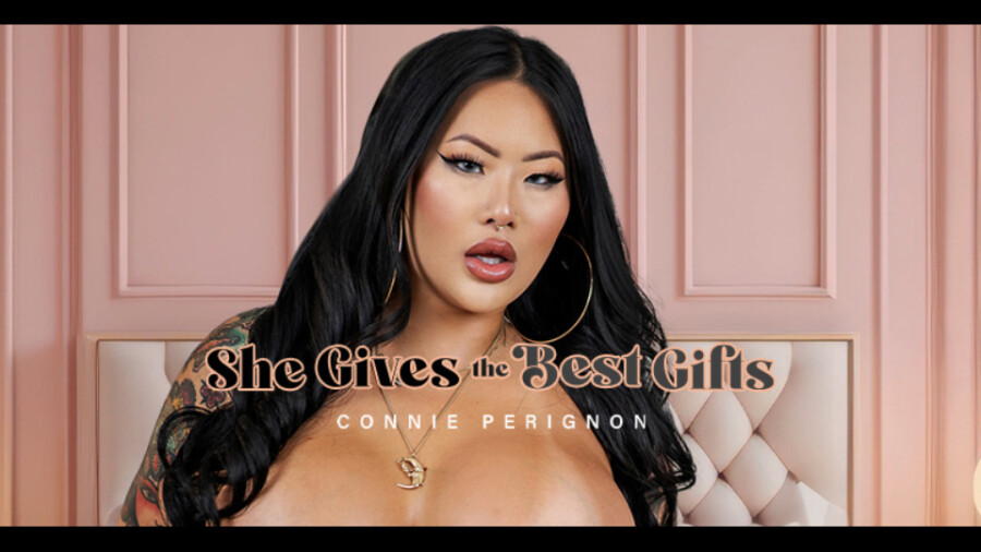 NEW YORK — Connie Perignon stars with Damon Dice in her first VR shoot, "She Gives the Best Gifts," from SexLikeReal.