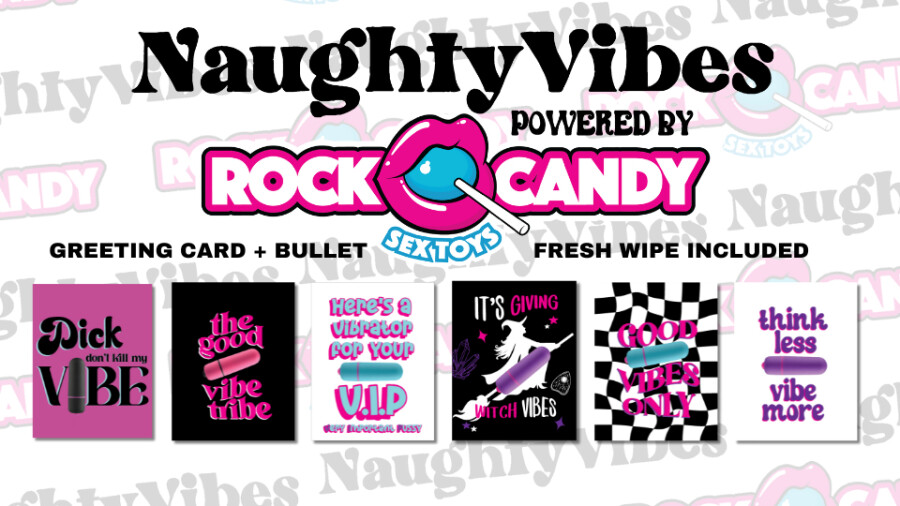 LOS ANGELES — KushKards/NaughtyKards is teaming up with Rock Candy Toys to launch NaughtyVibes, a co-branded line of pleasure product greeting cards.