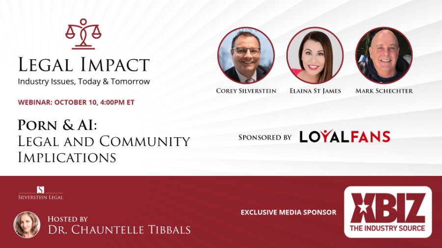 LOS ANGELES — Adult industry attorney Corey D. Silverstein will host the next live, online edition of his "Legal Impact" series, titled "Porn & A.I.: Legal & Community Implications" on Oct. 10 at 1 p.m. PDT.