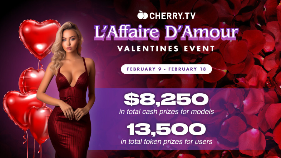 For the Valentine’s Day event, Cherry.tv will give away a total of 13,500 tokens for fans, plus cash prizes for models totaling $8,250.