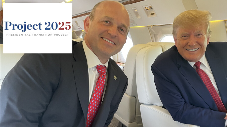 Main Image: Heritage Foundation President and Project 2025 leader Kevin Roberts and Republican presidential nominee Donald Trump on Trump’s private jet in 2022.