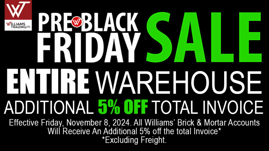 "With the slower sales we have all experienced, the pre-Black Friday Sale is ideal for dealers to stock up with an additional 5% discount on the entire warehouse," said Director of Sales and Marketing Scott D.