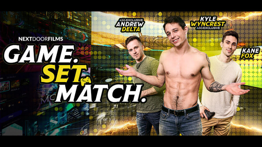LOS ANGELES — Alpha Studio Group (ASG) exclusives Andrew Delta and Kyle Wyncrest star with Kane Fox in the latest from studio brand Next Door Films, titled “Game. Set. Match.”
