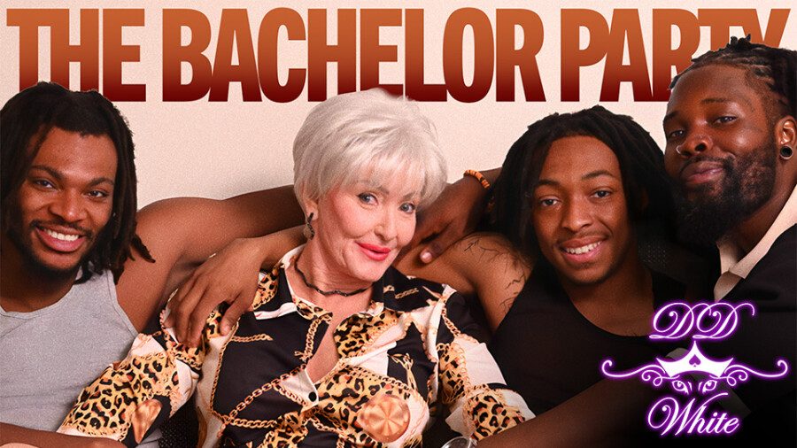 “Samson encounters the captivating DD White and, after a flirty exchange, convinces her to step in as the evening’s entertainment at a bachelor party,” the synopsis reveals. “Back in the room with music pulsing, DD takes charge, shedding her clothes in a striptease that quickly escalates as she takes on all three studs for an expert triple blowjob.”