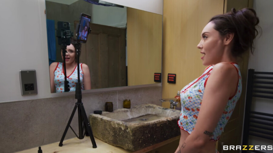 Directed by and co-starring Danny D, the scene opens with Knight as an influencer shooting her morning greeting video for her fans.