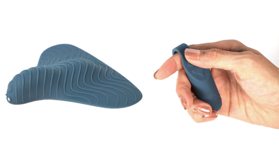 The gender-neutral device features two motors, a textured silicone surface, and a remote control designed for people with limited grip or dexterity.