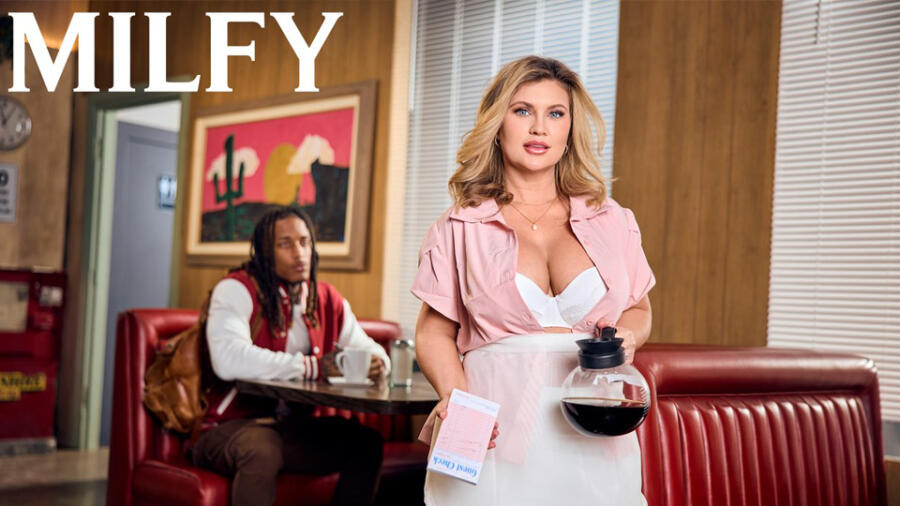 Directed by Jay Rogue, the scene opens with “waitress Andie Anderson at the end of her shift,” the synopsis reveals. “She’s cleaning up when Jay Hefner comes in for some pie. The next thing Andie knows, she’s licking whipped cream off his cock. After going down on Jay, Andie sits him in one of the booths and climbs on his lap. She lowers herself onto his dick and rides him in cowgirl. Next, Jay lies Andie down in the booth and does her in missionary.”