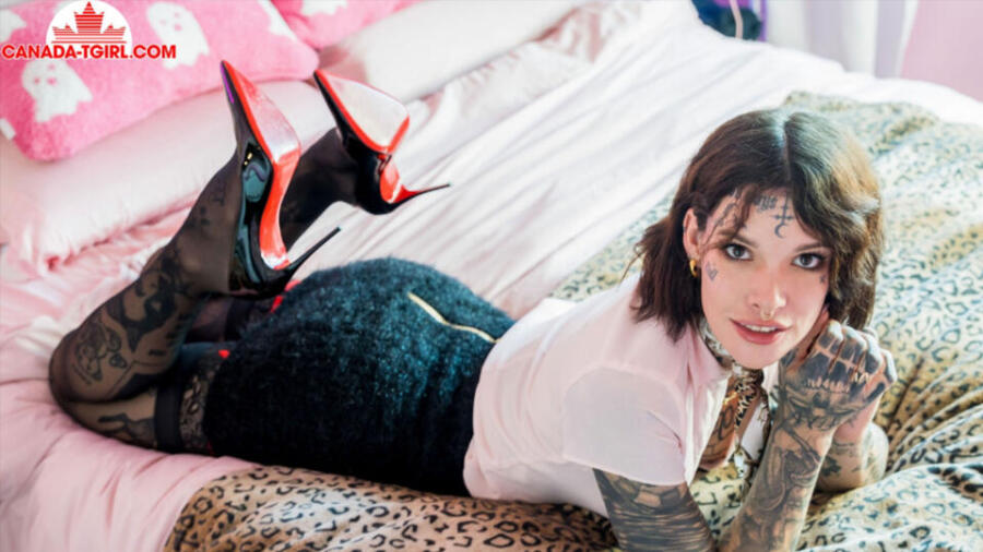 Directed by Vito Scalia, the scene marks Nosferatu’s first studio shoot since undergoing facial feminization surgery and breast augmentation.