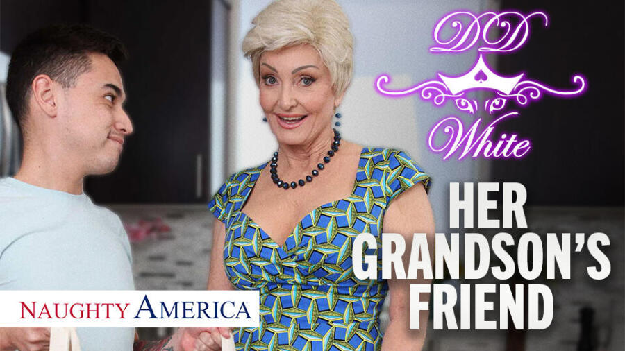 Titled "DD White Shows Her Grandson’s Friend How Experienced She Is at Sucking and Fucking," the scene opens with White and her grandson's college friend sorting through groceries in the kitchen when their conversation turns to his campus romances, the synopsis reveals. He confesses he’s not one to take the lead with his girlfriend, sparking White's mischievous side. With a knowing smile, she drops to her knees for a blowjob that leaves no doubt about her expertise. They relocate from the kitchen to the couch, where White mounts him, and he leaves her with a messy creampie.