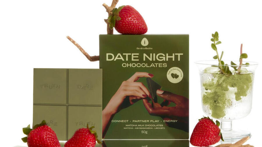 The package comprises creamy milk chocolate bites infused with strawberry and matcha, as well as ashwagandha and Liboost, plus a deck of Truth or Dare cards.