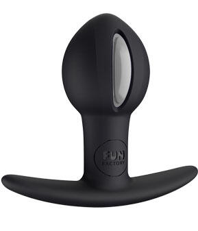 This butt plug is anything but a lazy bottom! Anytime you move, the weighted ball inside the B BALL UNO bounces, rolls, and rumbles in response! Get more from the motions of partner sex, with a plug that gives you powerful feedback with every thrust. Wear it during vaginal sex for an extra feeling of fullness: its round shape will angle your partner (or favorite dildo!) into your G-spot and maybe even let your partner in on the B BALL UNO’s unique sensation!The B BALL UNO is great for adding extra spice to a spanking or just for a silent, secret thrill while you go about your day. Its tapered tip helps you slide it right in, and the flexible silicone base fits snugly between your cheeks and moves with your body, making the B BALL UNO the most versatile plug in your arsenal.