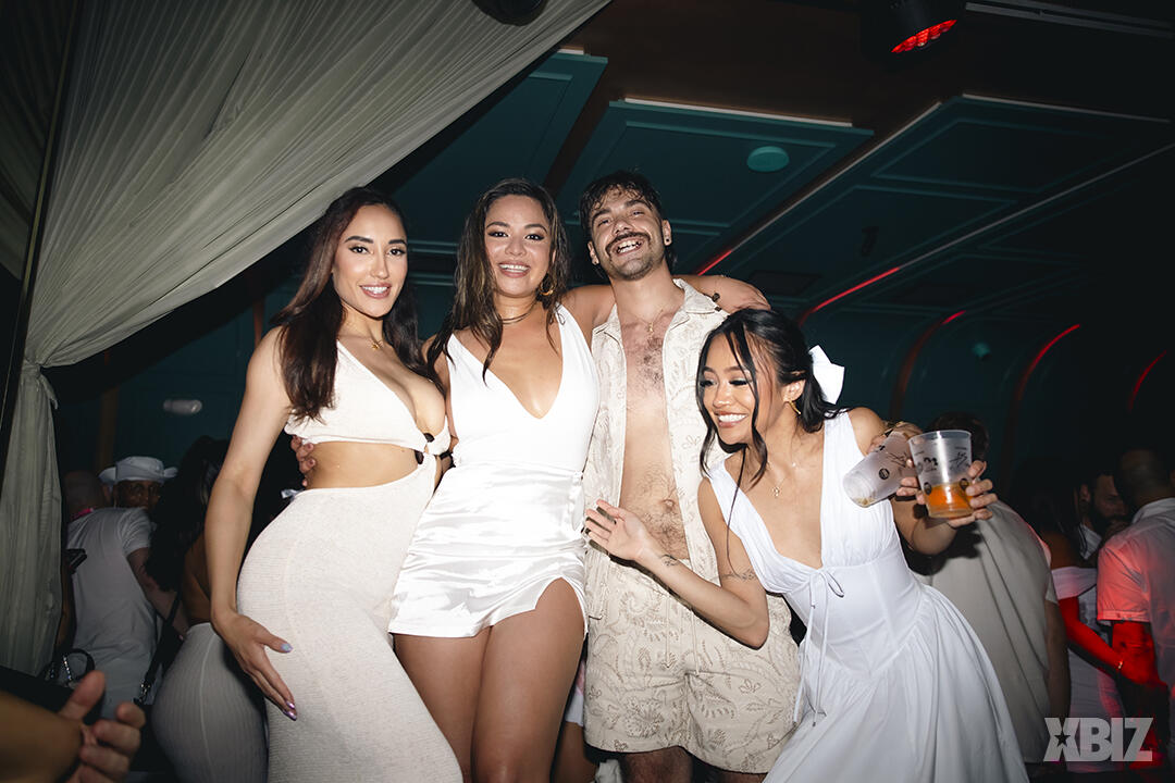 The XBIZ Miami 2024 calendar of festivities kicked off with a massive White Party, this year relocated to the swanky GALA Miami lounge in South Beach. With indoor and outdoor spaces, the venue proved a fitting backdrop to the non-stop dancing and cavorting by the white-clad crowd.