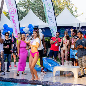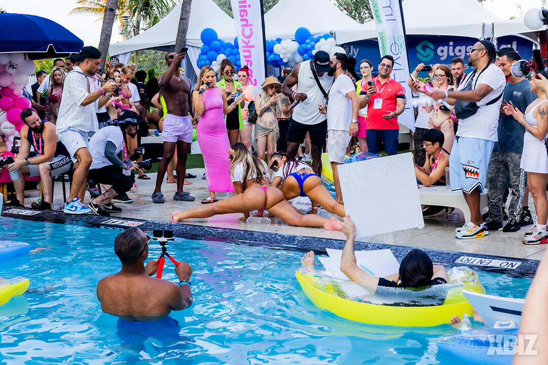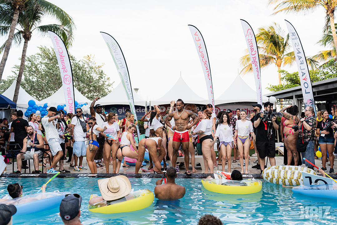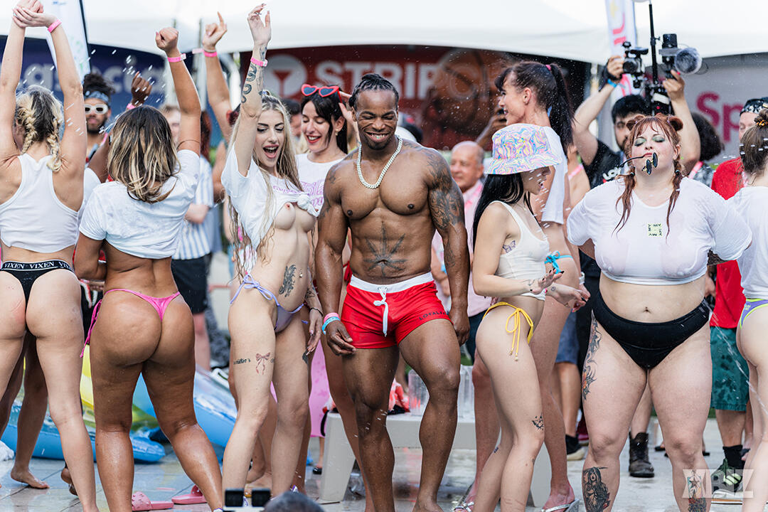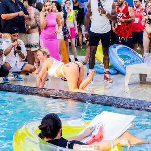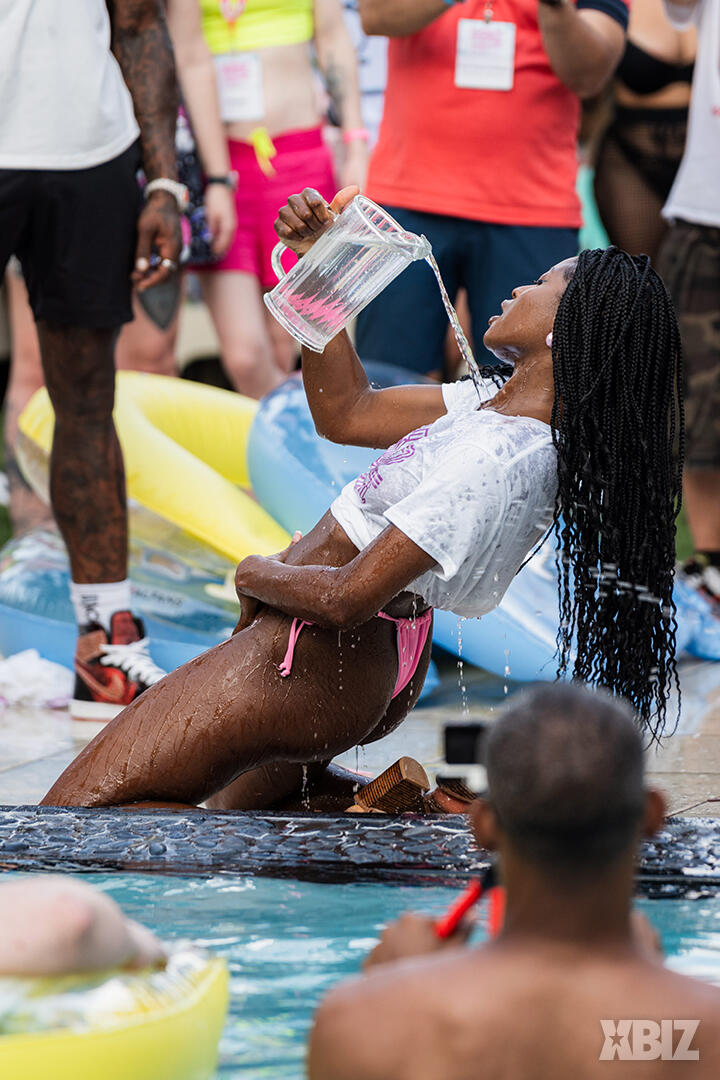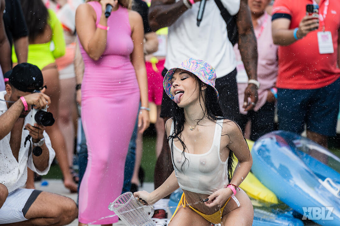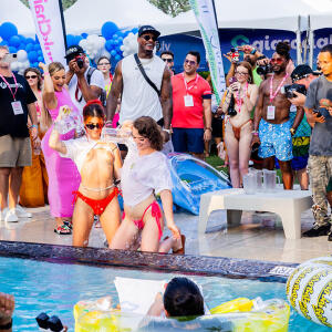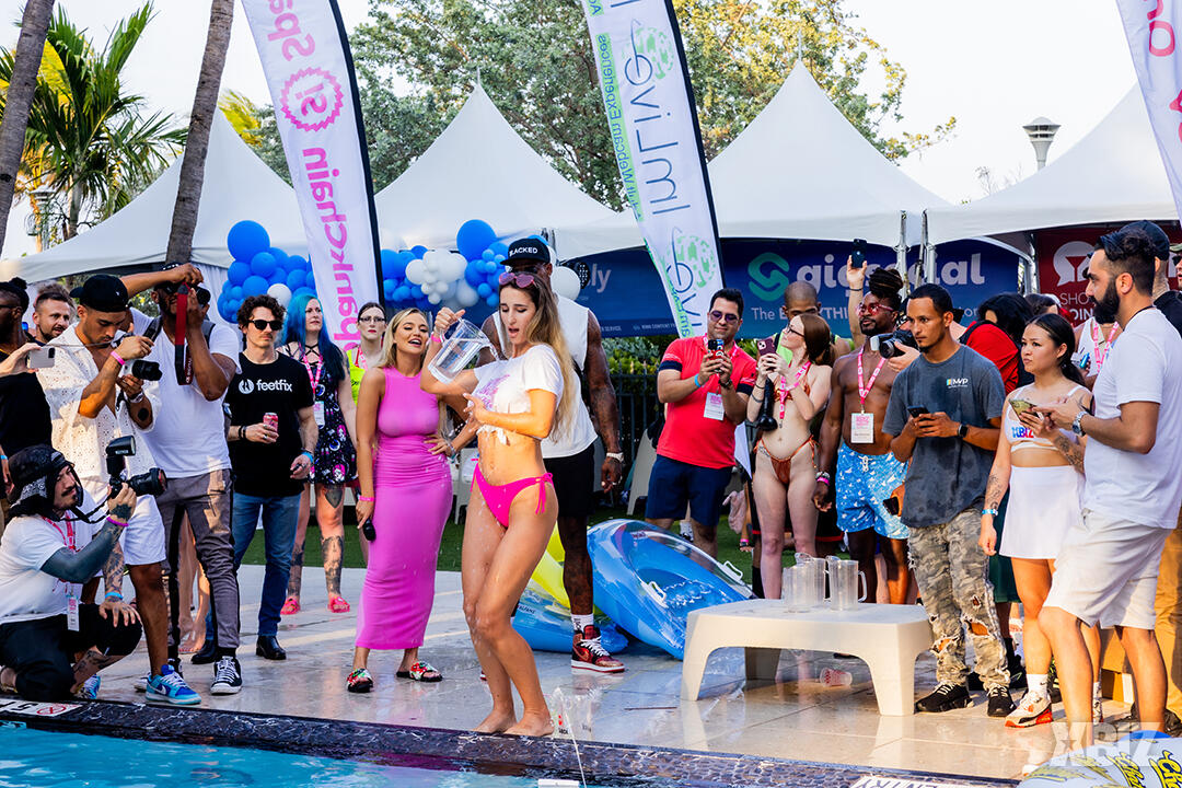 Poolside partying reached an extra spicy crescendo as the XBIZ Miami Wet T-shirt Contest got everyone soaked with body-shaking fun vibes, score cards and a DJ to set the mood.