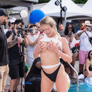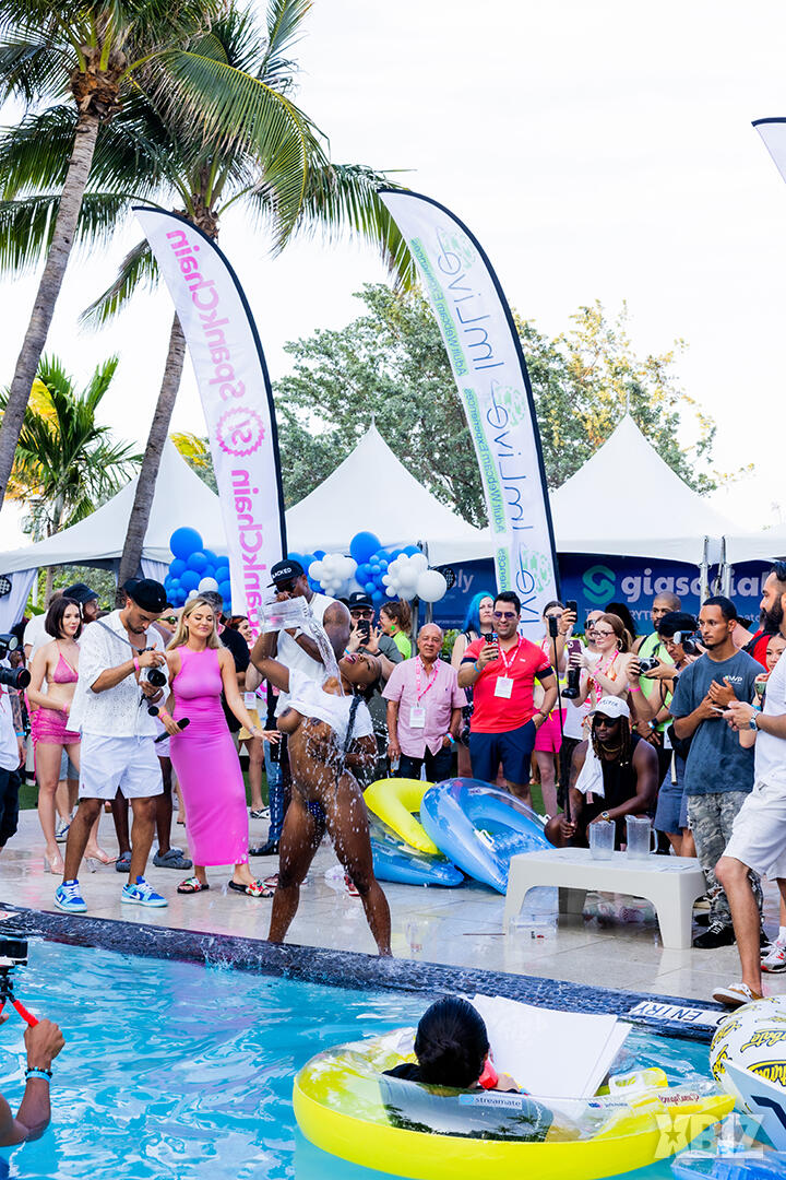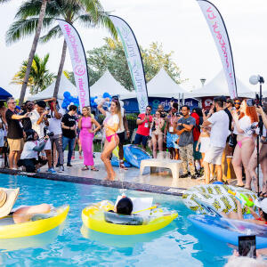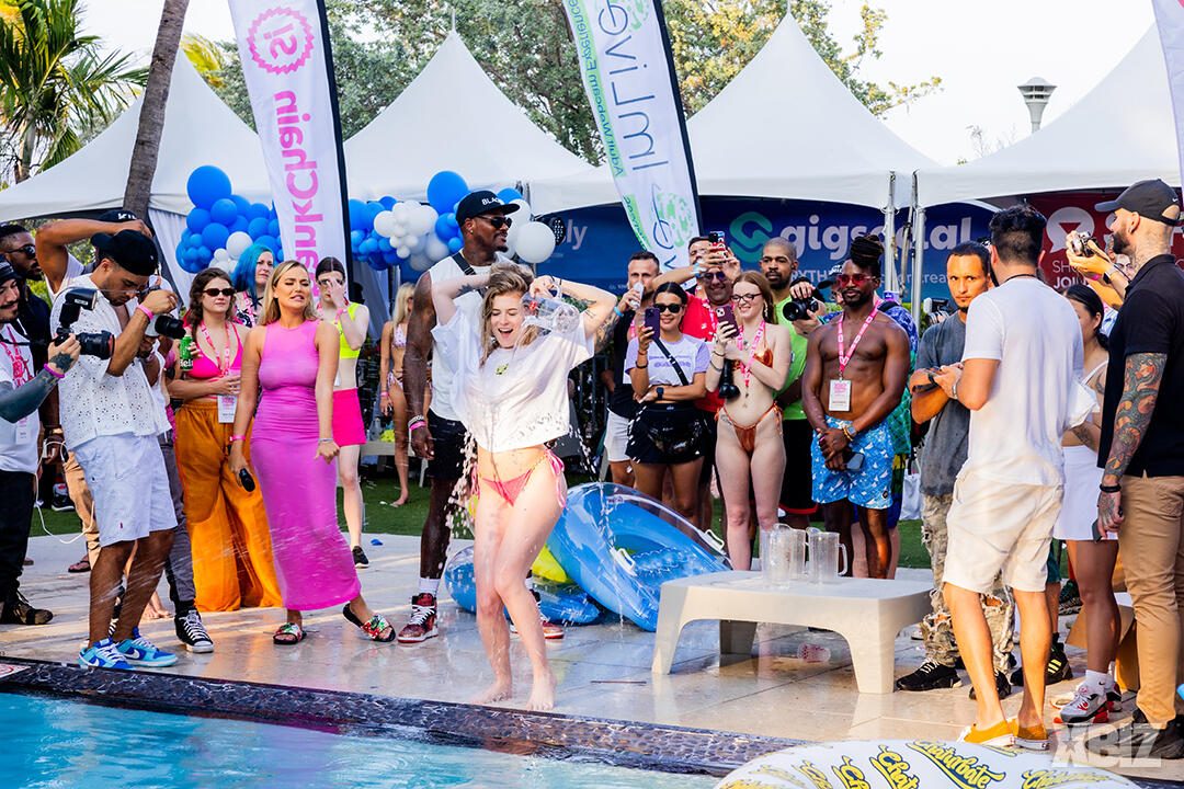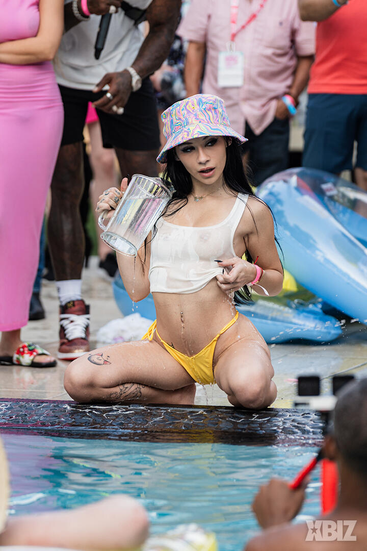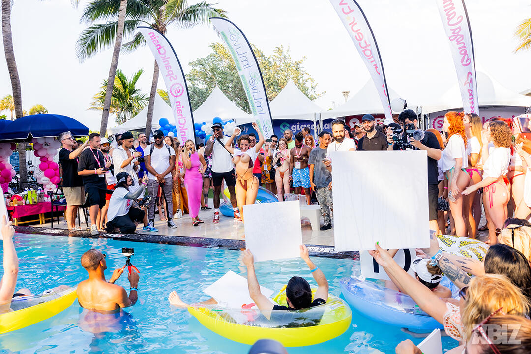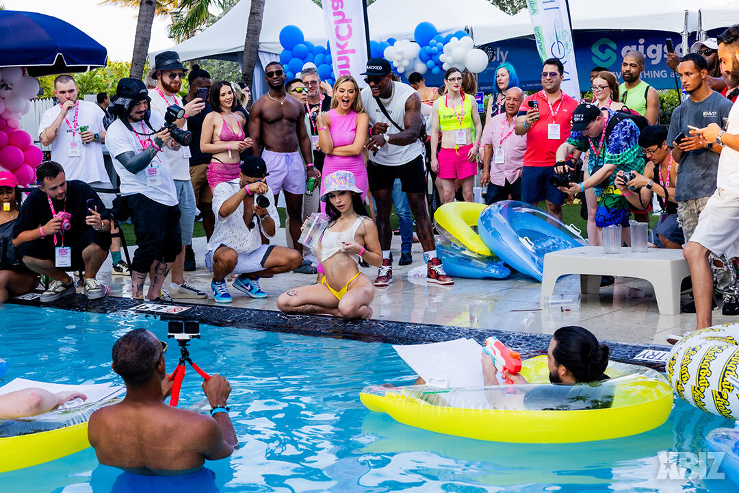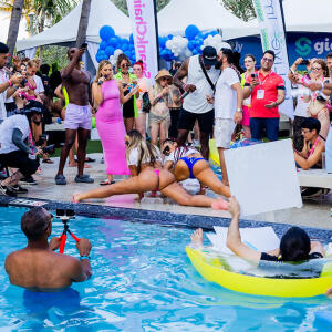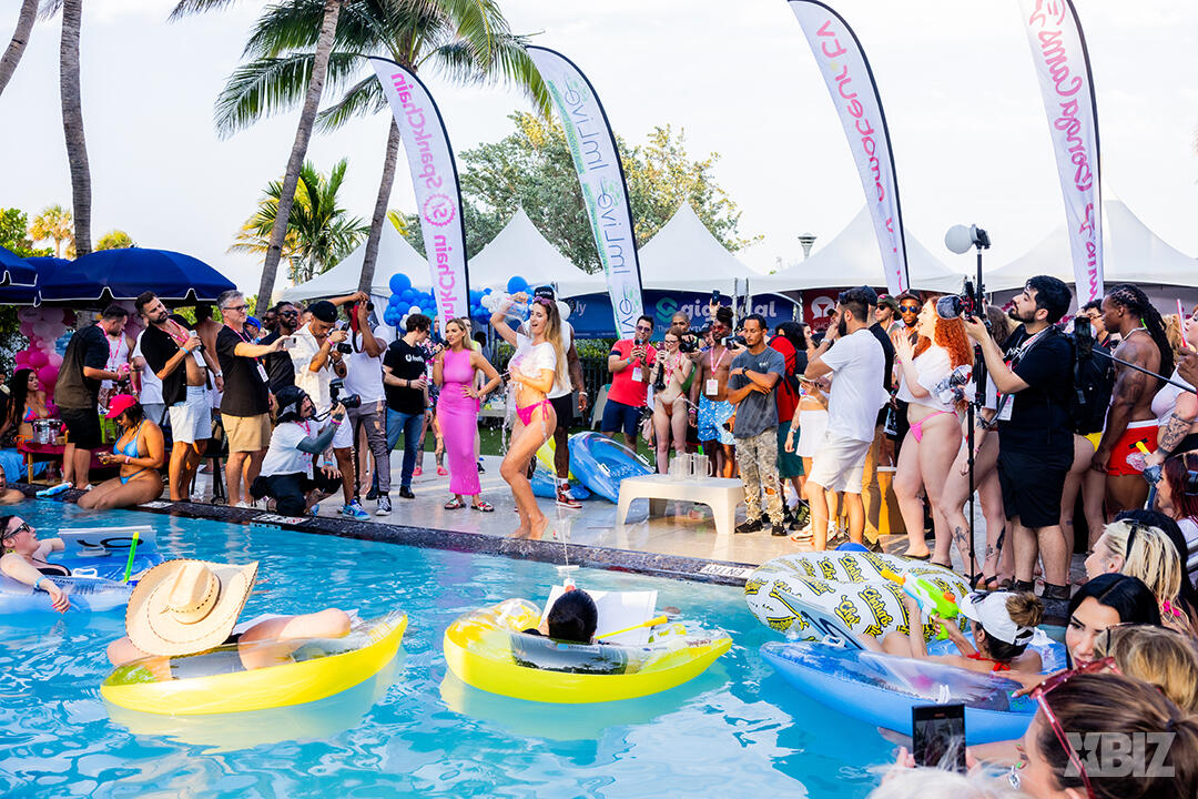 Poolside partying reached an extra spicy crescendo as the XBIZ Miami Wet T-shirt Contest got everyone soaked with body-shaking fun vibes, score cards and a DJ to set the mood.