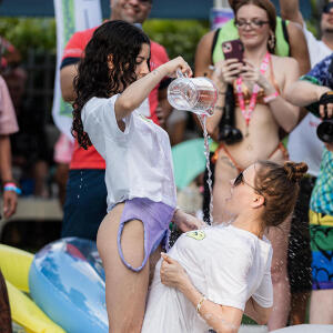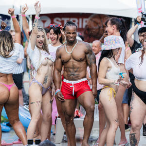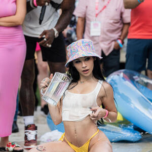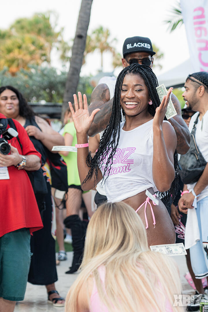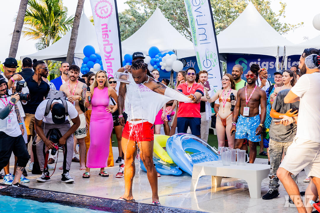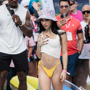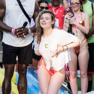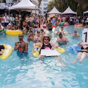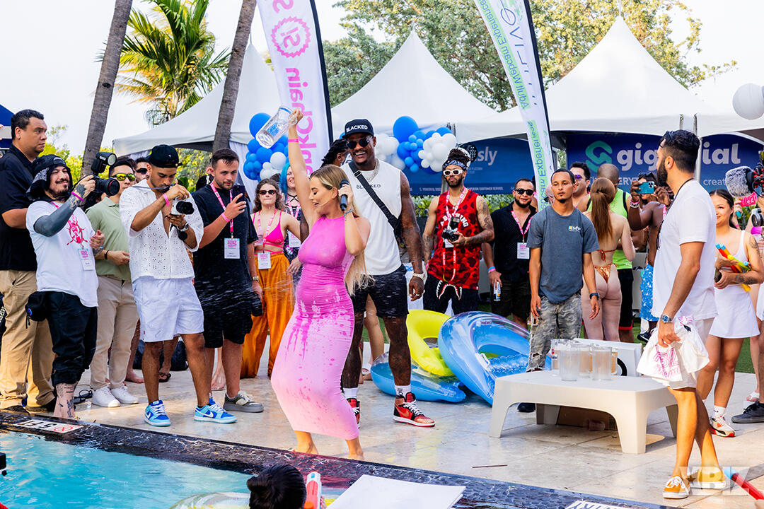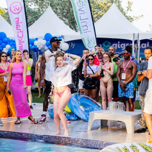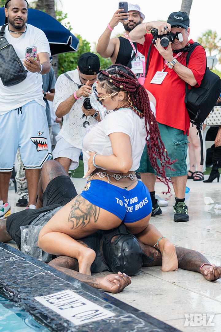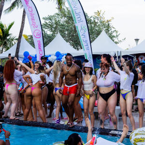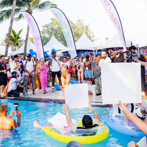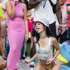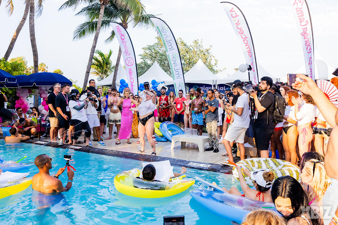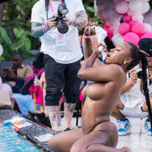 Poolside partying reached an extra spicy crescendo as the XBIZ Miami Wet T-shirt Contest got everyone soaked with body-shaking fun vibes, score cards and a DJ to set the mood.