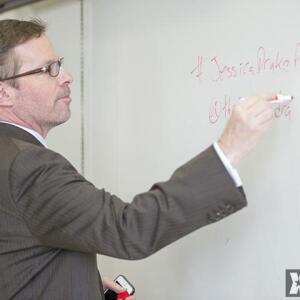 Wicked Pictures contract star Jessica Drake, an emerging sexual wellness authority and sex educator, gave a lecture on March 20 as part of Dr. Hugo Schwyzer's "Navigating Pornography" class.