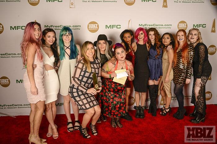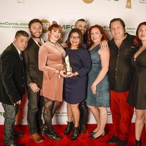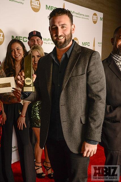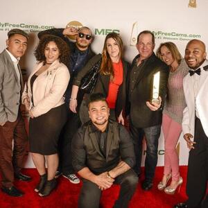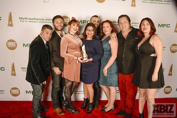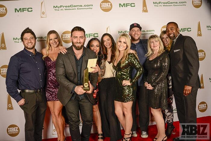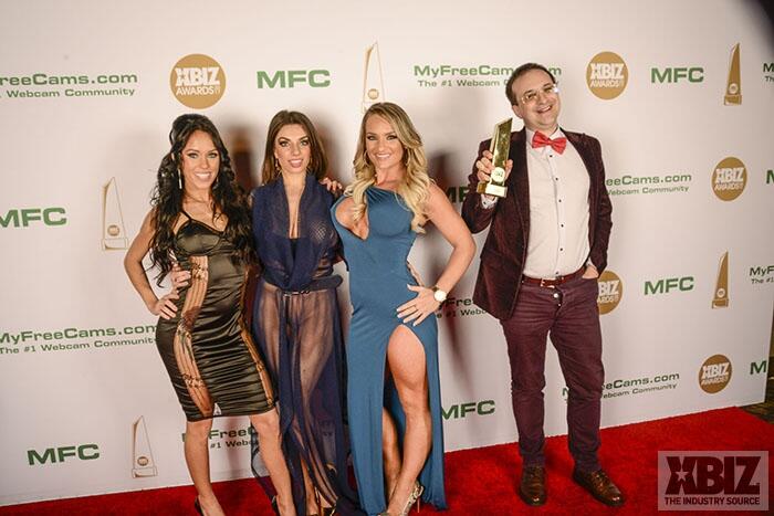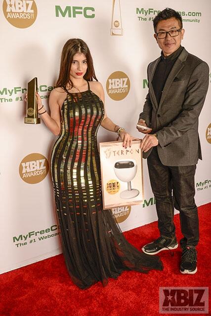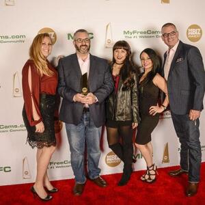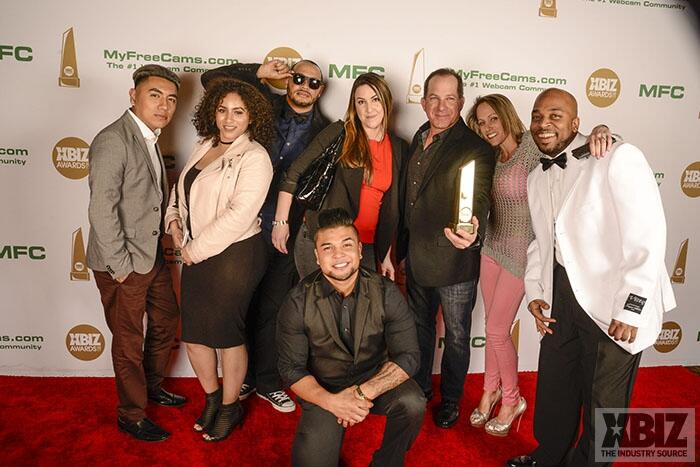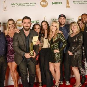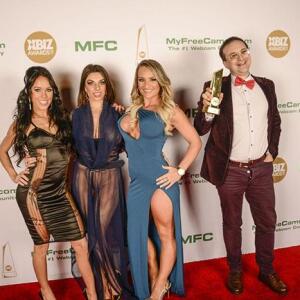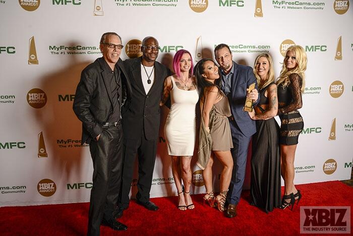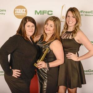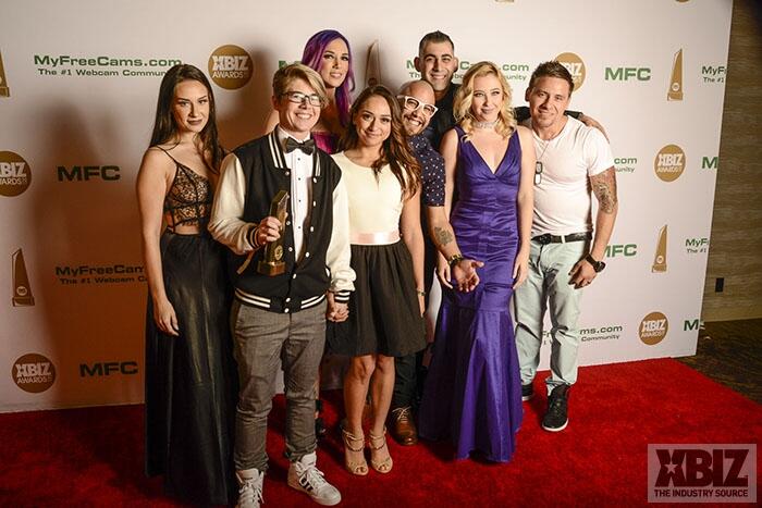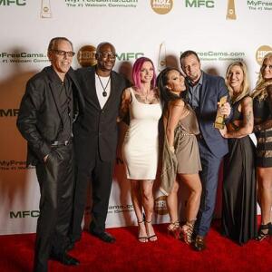 Winners show off their XBIZ Awards backstage at the Westin Bonaventure Hotel in downtown Los Angeles. The program, sponsored by MyFreeCams.com, featured award categories across every major segment of adult entertainment, including movies and production, web and technology, pleasure products and retail and distribution.