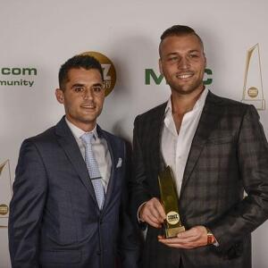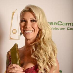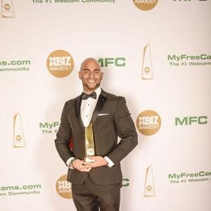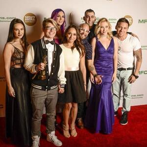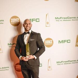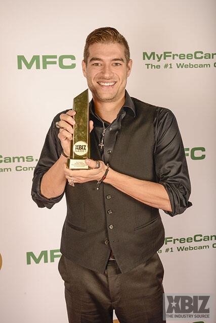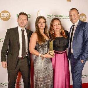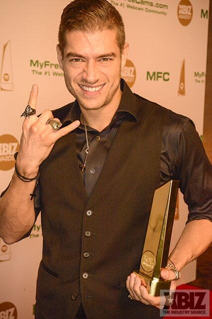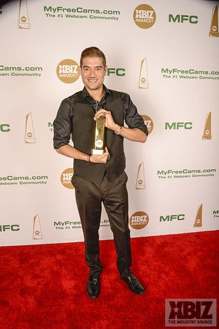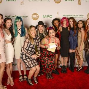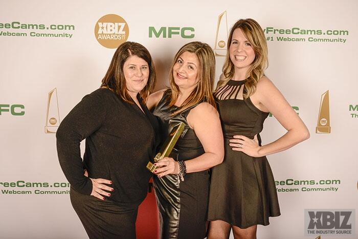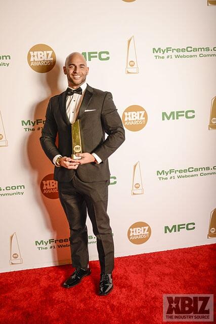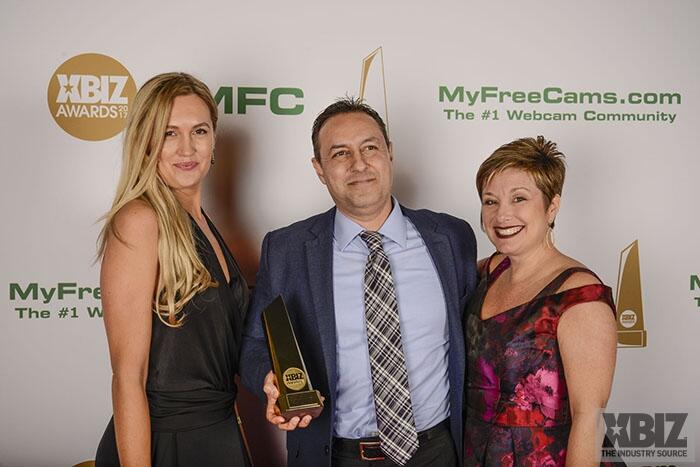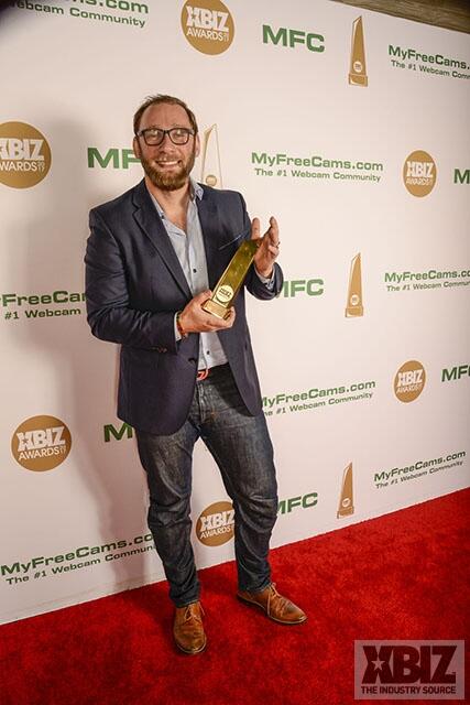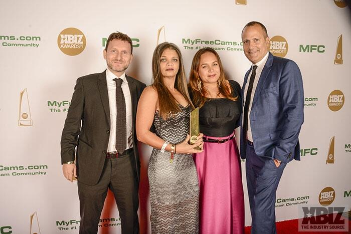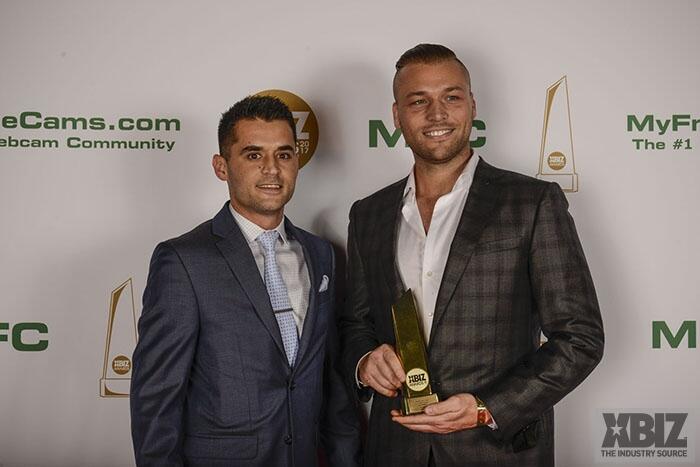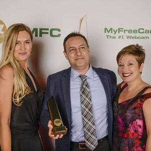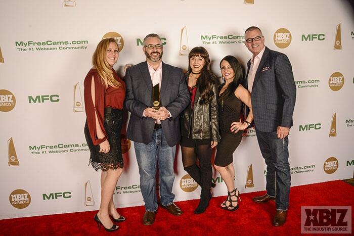 Winners show off their XBIZ Awards backstage at the Westin Bonaventure Hotel in downtown Los Angeles. The program, sponsored by MyFreeCams.com, featured award categories across every major segment of adult entertainment, including movies and production, web and technology, pleasure products and retail and distribution.