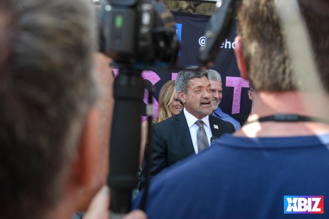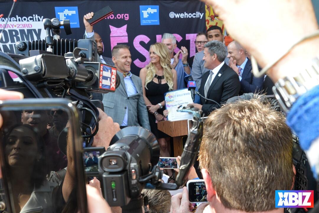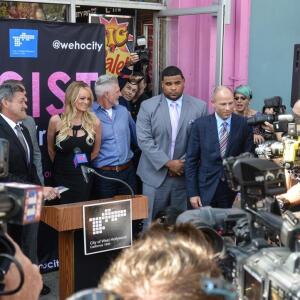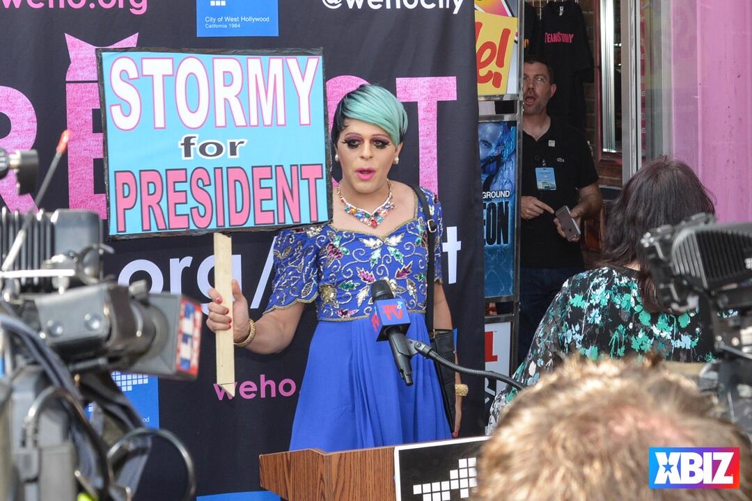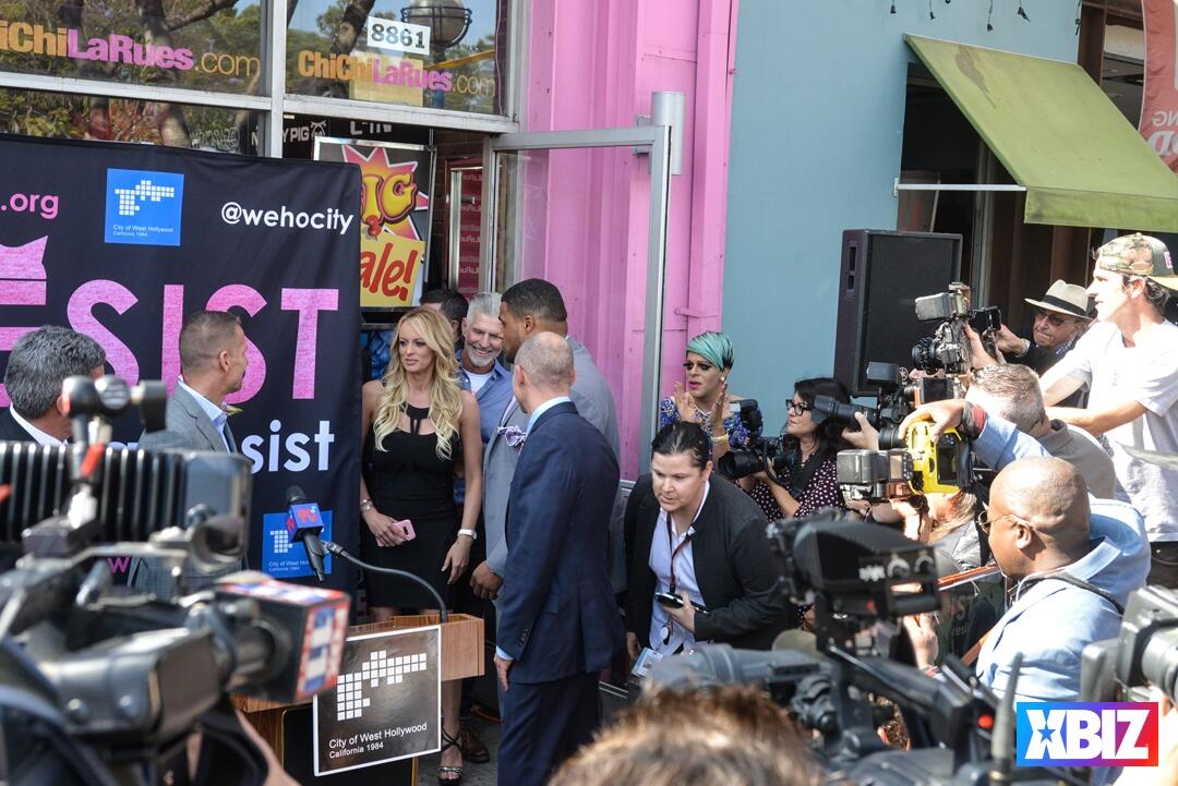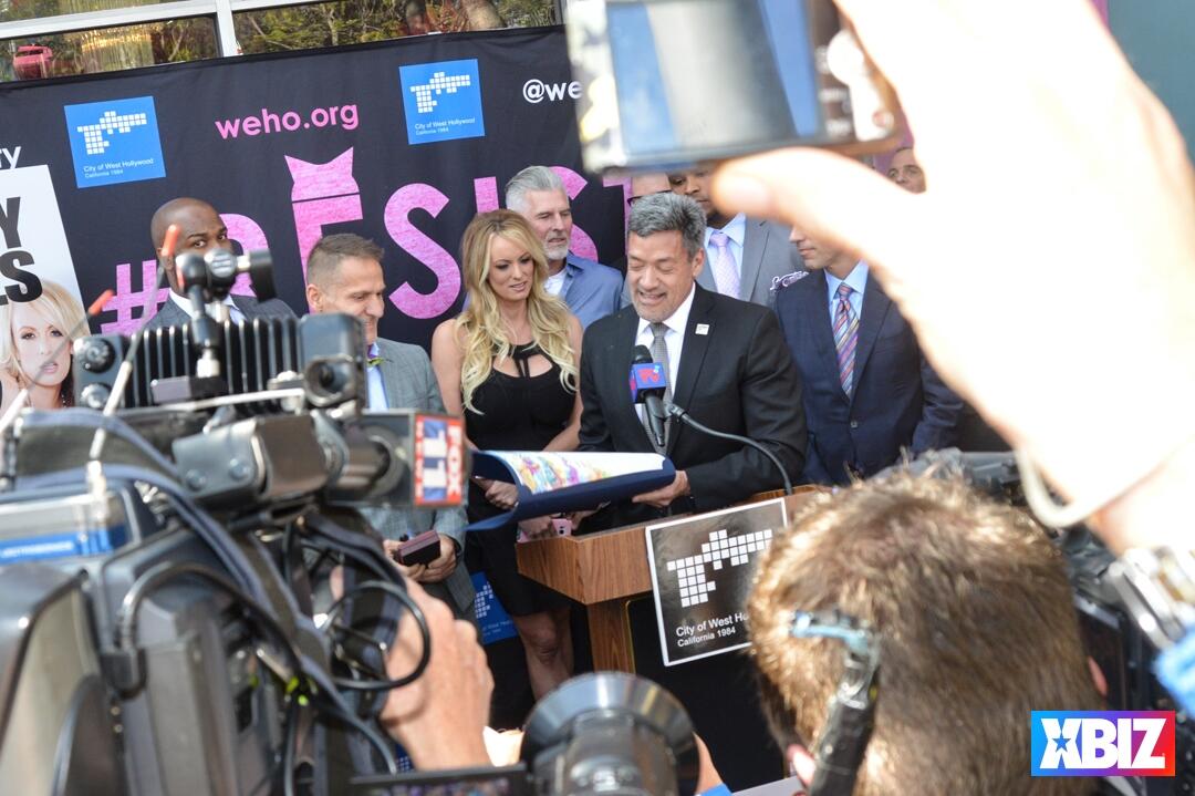 Adult superstar Stormy Daniels, scheduled host of the 2019 XBIZ Awards, received the ceremonial key to the city of West Hollywood, Calif., at Chi Chi LaRue's store. The event also premiered #TeamStormy apparel and offered an autograph signing.