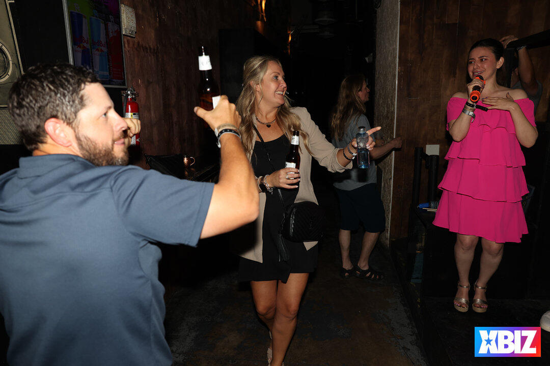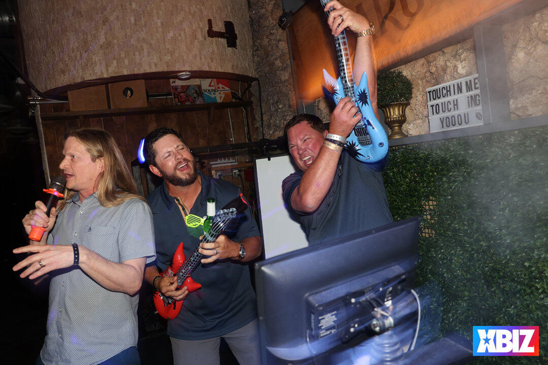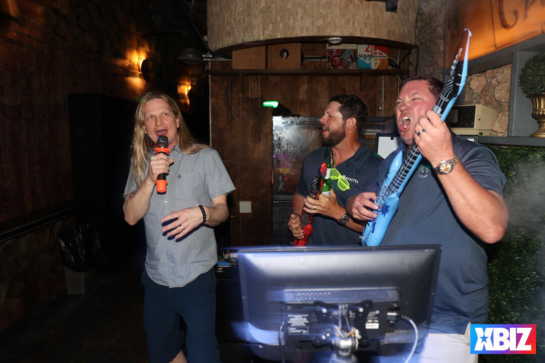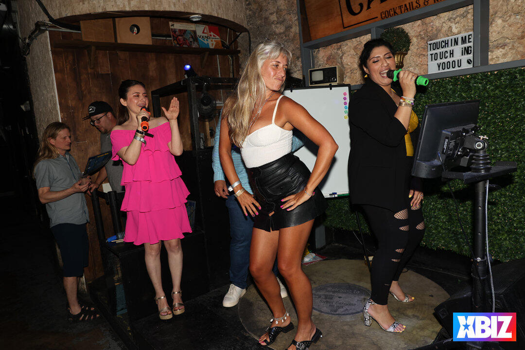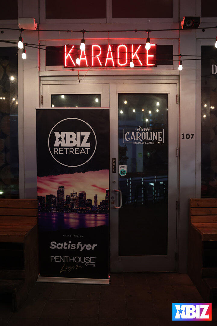 Following the first full day of one-on-one meetings between vendors and buyers, XBIZ Retreat followed up a satisfying Italian dinner with a fun night of karaoke and games sponsored by Satisfyer. Held at the popular karaoke bar Sweet Caroline, company executives sang their favorite tunes while fellow attendees cheered them along.