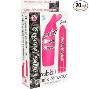 3 Speed Bullet With Rabbit Orgasmic Stimulator in 2399-1 PINK and 2399-2 WHITE • 3 speed bullet • Stretchy rabbit sleeve • Pocket bullet • 7 inch retrieval cord • Push button control • Waterproof • Phthalates free • RoHS compliant • Materials: Rabbit – TPE, Bullet – ABS • 1 1.5V “N” battery (included) • Length: 3" • Diameter: 0.984"Copyright © 2026 Adnet Media. All Rights Reserved. XBIZ is a trademark of Adnet Media.