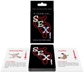 A year of Sex offers you over 50 different Kama Sutra positions. Use the cards as positional references or play one of the three Sex! Games to build your fantasy. Each A Year of Sex! Card offers simple technique instructions and a challenge rating of 1-5, with 5 being the most challenging.Copyright © 2026 Adnet Media. All Rights Reserved. XBIZ is a trademark of Adnet Media.