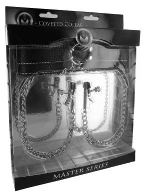 They'll submit to your deviant desires with this timeless classic... This two-in-one set is made with submission in mind. The quality leather collar secures by means of a buckle and has two 12 inch chains attached to a front D ring. Ending the chains are adjustable nipple clamps that are easily made tighter or more loose with thumb screws. Adorn your naughty one's neck with this striking collar, as the clamps dangle seductively to and fro...Copyright © 2026 Adnet Media. All Rights Reserved. XBIZ is a trademark of Adnet Media.