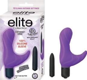 Elite Collection - Climaxer Vibe in 2428-1 Black and 2428-2 Purple • 100% Silicone Sleeve • 10 Functions g-spot & clitoral stimulator • Removable bullet • Push Button • Waterproof • Phthalates free • RoHS compliant • Material: Sleeve - Silicone, Bullet - ABS • 4 LR44 (AG13) batteries included • Size: Sleeve Length - 3.5”; Bullet Length - 3.25”Copyright © 2026 Adnet Media. All Rights Reserved. XBIZ is a trademark of Adnet Media.