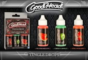 This set of oral sex enhancers intensify blow jobs by tingling, teasing, and sweetening the entire package. Our GoodHead Tingle Drops come packaged in easy-to-use 1 oz. drip bottles and three mouthwatering flavors: Strawberry, Green Apple, and Watermelon. You’ll love the user-friendly package and delicious fruit flavors that effectively provide the perfect blend of great taste and delightful sensations. A couple drops are all you need! Proudly made in America.Copyright © 2026 Adnet Media. All Rights Reserved. XBIZ is a trademark of Adnet Media.