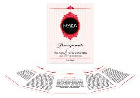 Each Passion Bath Salt set contains 5oz. of crystal bath salts in a Pomegranate scent. This set also contains 5 waterproof cards with suggestions for fun and kinky things that you and your lover can do in the tub or hot tub.Copyright © 2026 Adnet Media. All Rights Reserved. XBIZ is a trademark of Adnet Media.
