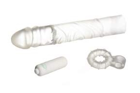 Fulfill - Penis Extension Kit • Clear sleeve extends penis a full 3” (7.5 cm) of extra length while maintaining a sensual look • Enhanced thickness adds girth to entire length of penis • Soft sleeve can be trimmed creating a comfortable customized fit. • Supple TPR material feels like real skin, allowing both partners to enjoy sensations equally • Includes a stretchy TPR love ring to maintain a firmer erection longer. Ring can be used without sleeve. • Compact, silky smooth 3 speed, water-resistant vibrating bullet can be used with or without love ring • Vibrating bullet can be worn below the shaft to stimulate the testicles or above the shaft to make contact with your partner • Water resistant • Phthalate-free, latex-free and PVC-free TPR Extender 8.5” x 1.5” (21.6 cm x 3.8 cm) Love Ring 1.38” diameter (3.5 cm diameter) Bullet vibe 1.97” (5 cm) www.SinclairSelect.com® Battery Info: 2 AG-5 batteries includedCopyright © 2026 Adnet Media. All Rights Reserved. XBIZ is a trademark of Adnet Media.