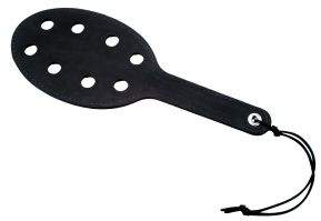 Leave your mark with this sleek leather paddle. Its wide, rounded shape will distribute your blows evenly, making a medium-intensity thud. Cut-out holes will leave rounded marks on your partner while allowing better air flow and a sharper impact than a solid paddle.Copyright © 2026 Adnet Media. All Rights Reserved. XBIZ is a trademark of Adnet Media.