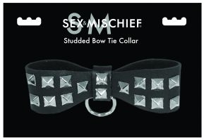Hot, fashionable studded, vegan leather bow tie. PVC bow tie features stud embellishments and comes with a nickel free D-ring for leash attachment (leash not included). Formal enough to wear out.Copyright © 2026 Adnet Media. All Rights Reserved. XBIZ is a trademark of Adnet Media.