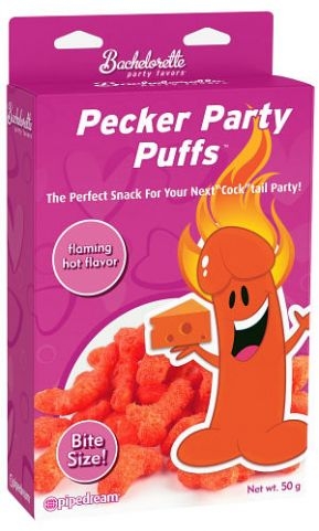 These Cheesy Pecker Puffs are the perfect snack for finger-lickin' fun!They're crunchy on the outside, light and and fluffy on the inside, and bursting with delicious flaming hot cheese flavor! Pop these bite-size peckers in your mouth and you won't be able to stop crunching! Perfect for your next cocktail party, bridal shower, or even just a mid-day snack, Pecker Puffs have the special taste you just can't resist!! These Cheesy Pecker Puffs are the perfect snack for finger-lickin' fun!Make the girls last night out an unforgettable one with these hilarious Bachelorette party favors. We design, create, and innovate the best novelties and party gifts in the the world.