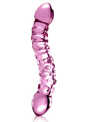 Elegant, upscale, and hand-crafted with amazing attention to detail, this luxurious line of glass massagers will leave you breathless. Each hand-blown Icicle glass wand is sleek, unique, and made to play hard.Enjoy double the fun with this luxurious double-sided glass massager. Each end features a tapered tip to ease insertion as the bulbous head hits all the right spots. Cleverly curved for explosive G-Spot or P-Spot stimulation, either end of the shaft boasts unique bumpy and ribbed swirl textures that offer endless possibilities for pleasure!