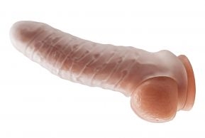 The Real Boy Kit is a remarkable new concept in sex toys, its revolutionary design features a firm inner core and a soft outer skin is just like the real thing. The Real Boy Kit comes in a combo pack with the Fat Boy Thin. The sheath fits perfectly over the dildo and stays in place by hooking over the scrotum with the opening hole on the bottom.The dildo can be used with the sheath for a softer real feel, or without the sheath for a harder edge. Also, the sheath can be used separately for masturbation or as an extender, making it a true 4 in 1 product. The internal ribs and nubs inside the sheath, gives the user extra pleasure with a soft cushioned feeling on the inside.