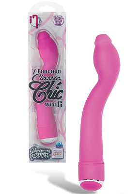 A uniquely contoured g-spot vibe from California Exotic Novelties' Classic Chic collection, the Wild G lends a versatile hand at stimulating pleasure points body-wide thanks to its angled, flat head that's perfectly suited for g-spot, clitoris, nipple and testicle arousal. Though it is specifically designed to expertly probe the elusive g-spot with its ergonomic curves, the tapering, noduled tip opens up plenty of play opportunities for women and experimenting couples. Insertable up to 5 inches of its silky smooth shaft, the Wild G is enameled in California Exotic's revolutionary Velvet-Cote material from head to base, an ultra-soft texture that glides wonderfully with a bit of lube be it a water-based or silicone formula. Its material certainly compliments an even vibration throughout the entire shaft, with 7 incredible functions packed into its compact body. A simple silicone button on the toy's base filters through each setting, including escalating speeds and pulsating patterns of vibration to send you over the edge. To clean, simply wash before and after each use with a toy cleaner or mild soapy water. Requires 2 AA batteries (sold separately). Waterproof.Specifications: