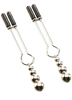 Let your naughty fantasies run wild in Eves Naughty Nipple Clamps. Made from silvery metal, these clamps put a sexy pinch on your love buds. Elegant beaded weights swing from each clamp, tugging lightly with your every move. The best part? Theyre adjustable via easy to use sliders, so you can indulge in a little or a lot of nipple-stimulating excitement. Theyre the nipple clamps Adam & Eve customers have been clamoring for!