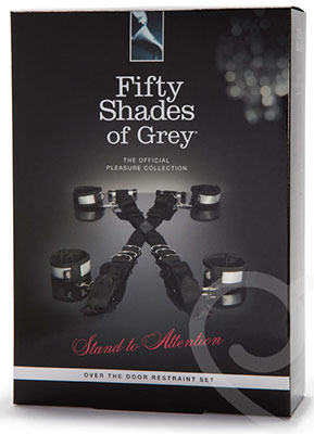 The “Stand To Attention” over the door restraint set includes the restraint, a decent blindfold and a “do not disturb” door hanger that reads “Gray At Play” on one side and “Mr. Grey Will See You Now” on the other. The restraint itself features fur-lined cuffs and metal o-rings. Use this item for what it was designed for, to live out a Fifty Shades of Grey fantasy.