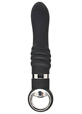 The No. 13 Ribbed Pleaser is another hit from the Black Door collection from Closet Collection. The elegant black box shows the lustrous silicone vibrator against the bright green background. The magnetically sealed package opens like a door and what is inside did not disappoint. I grabbed my new toy and got two fresh AA batteries and headed to the bedroom. The one-button control made it easy to use and allowed me to quickly find the perfect balance of power and pulse from the strong motor in the tip. The ring on the end of the vibrator also helped keep me from accidentally switching functions when things got hot and heavy. The size of the shaft was perfect and the ribs at the base just added that much more pleasure.