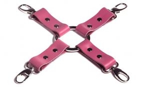 Abandon all inhibitions with the ultra-stylish Rani Hogtie. Designed to securely bind all four limbs at once, this leather piece can restrain wrists and ankles in the front or back. A multipurpose, heavy-duty O-ring sits at the center. while four nickel-plated swivel clips can attach securely to any cuff or restraint. The Rani Hogtie is handcrafted and made from sturdy latigo leather that is adorned with reinforced rivets. Available in red, pink, or purple, it allows anyone to customize their playtime with color and adventure.Copyright © 2026 Adnet Media. All Rights Reserved. XBIZ is a trademark of Adnet Media.