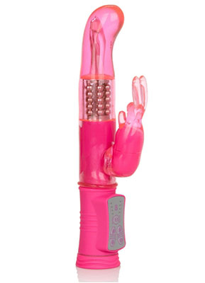 A G-spot loving playtime classic from the always user-friendly Shane's World collection, the Jack Rabbit G vibe offers up all the much-loved features of the groundbreaking bunny vibe in a sleek size suited to all experience levels.Along with a sexily curvy bead-packed shaft spinning at four possible speeds, the Jack positions a full-coverage tickle-eared rabbit stimulator at clitoris level. Flexing gently for ideal positioning, that namesake bunny places eight rhythms of steady and pulsating vibration precisely agasint the nerve-ending rich clitoris and sensitive surrounding areas. A simple interface mans the rotation and vibration functions independently, so toe-curling customization is absolutely in the cards.