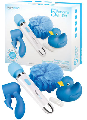 Together or solo have fun in the bath or shower. There is no better way to relax during bath time than with the 5 piece Bodywand Bathtime Gift Set. This gift set comes complete with submersible, 100 percent waterproof, battery powered wand, optional dual stimulating insertable dolphin extension, massaging body proof with waterproof vibrating bullet and a cute vibrating rubber ducky to float around while you luxuriate.Copyright © 2026 Adnet Media. All Rights Reserved. XBIZ is a trademark of Adnet Media.