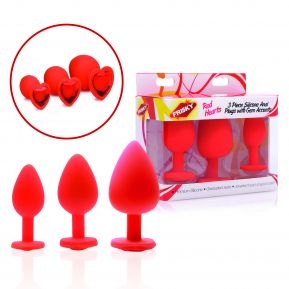Frisky Red Hearts 3 Piece Silicone Anal Plugs with Gem Accents