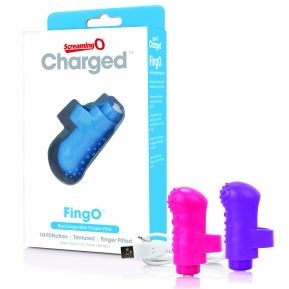 Put pleasure at your fingertips with the Charged Fing O, a mini vibe powered by famous Vooom vibration technology that sits comfortably on your finger. Featuring a unique 10-function low-pitch motor, the Charged Fing O rumbles with penetrating vibration and turns your finger into your new favorite sex toy – and it’s 100% waterproof, too. This convenient mini vibe is encased in a soft body-safe SEBS sleeve for enhanced pleasure with a stretchy strap to keep it in place, making it easy to incorporate vibration into almost any intimate act.The Charged Fing O comes equipped with a 2-year limited warranty and a secure USB charging system (included) that boosts power for 60+ minutes at a time.