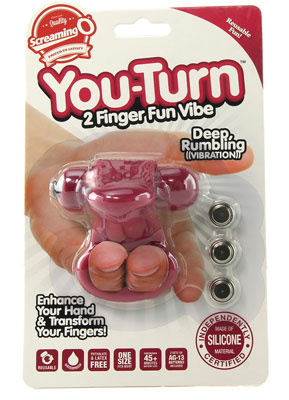 The You-Turn finger-fitted fun vibe enhances your hand and transforms your fingers with a unique design unlike anything on the market. Use the You-Turn to boost the signature “come hither” G-spot massage motion with penetrating vibration and clitoral stimulation.Made of lab-tested, body-safe True Silicone™, the You-Turn fits securely and comfortably with an easy-to-use design. Simply slip two fingers through the loop and use your thumb to adjust the motor’s position to send powerful vibes throughout your hand for a memorable manual experience.