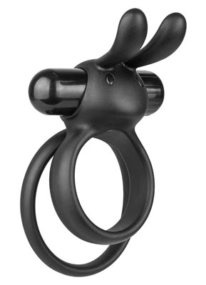 The Ohare XL is a slightly larger version of the best-selling vibrating couples ring made famous for its clever and familiar shape! This unique vibrating ring turns him into your favorite rabbit vibe with larger comfort-fit rings and a super-powered 4-function motor enhanced with soft, flexible rabbit ears! Made of lab-tested body-safe silicone, these ears transfer vibration all the way to their tips for a pleasant tickling sensation that helps heighten arousal and make orgasms come easier during intercourse.The Ohare XL is most unique for its double-ring design, which helps keep the rabbit in place; one ring stretches around the shaft and the second stretches around the shaft and testicles, giving him an effective isolation fit that many users report enhances erections and intensifies orgasms. The Ohare XL excites and delights with an iconic shape she loves and comfortable erection enhancement he craves!