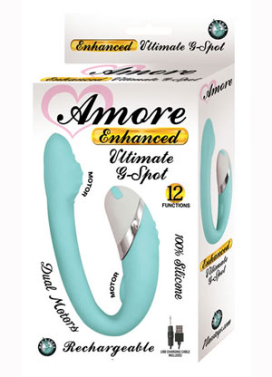 Amore Enhanced Ultimate G-Spot Vibrator. Features 12 functions. Dual motors added with a deeper reach. 100% Silicone. Rechargeable vibrations. USB cable included. Waterproof vibrator. Made of body safe phthalates free materials: 100% Silicone Shaft, ABS Controller Base. Size: total length 5.75 inches, insertion length 5 inches, diameter 2.75 inches.Copyright © 2026 Adnet Media. All Rights Reserved. XBIZ is a trademark of Adnet Media.